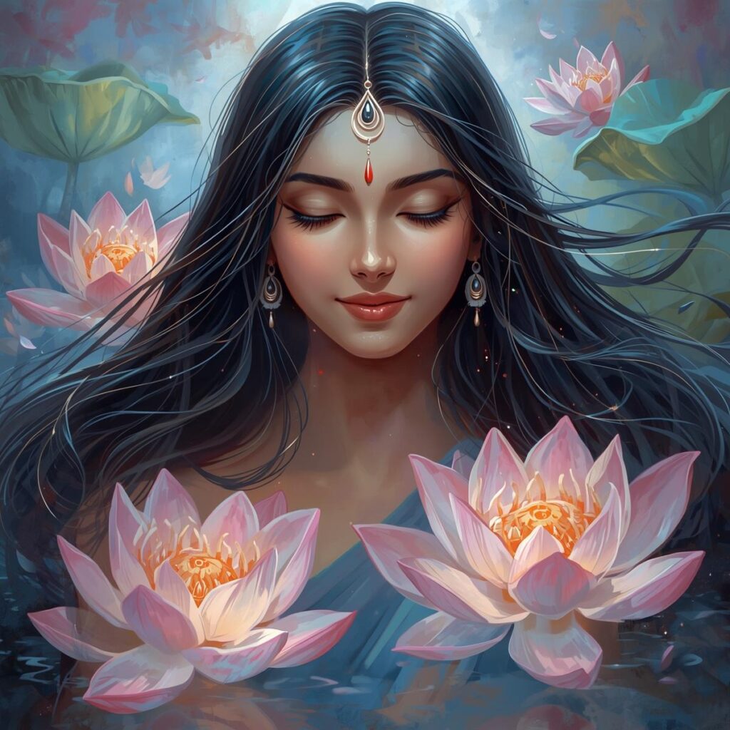 私がシータヒーリングに出会った頃の守護天使は、上図の様なインドの女神っぽい雰囲気の美しい天使がついてくれていました。髪や服に繊細で綺麗なアクセサリーを付けていて、見惚れてしまうくらいでした。
